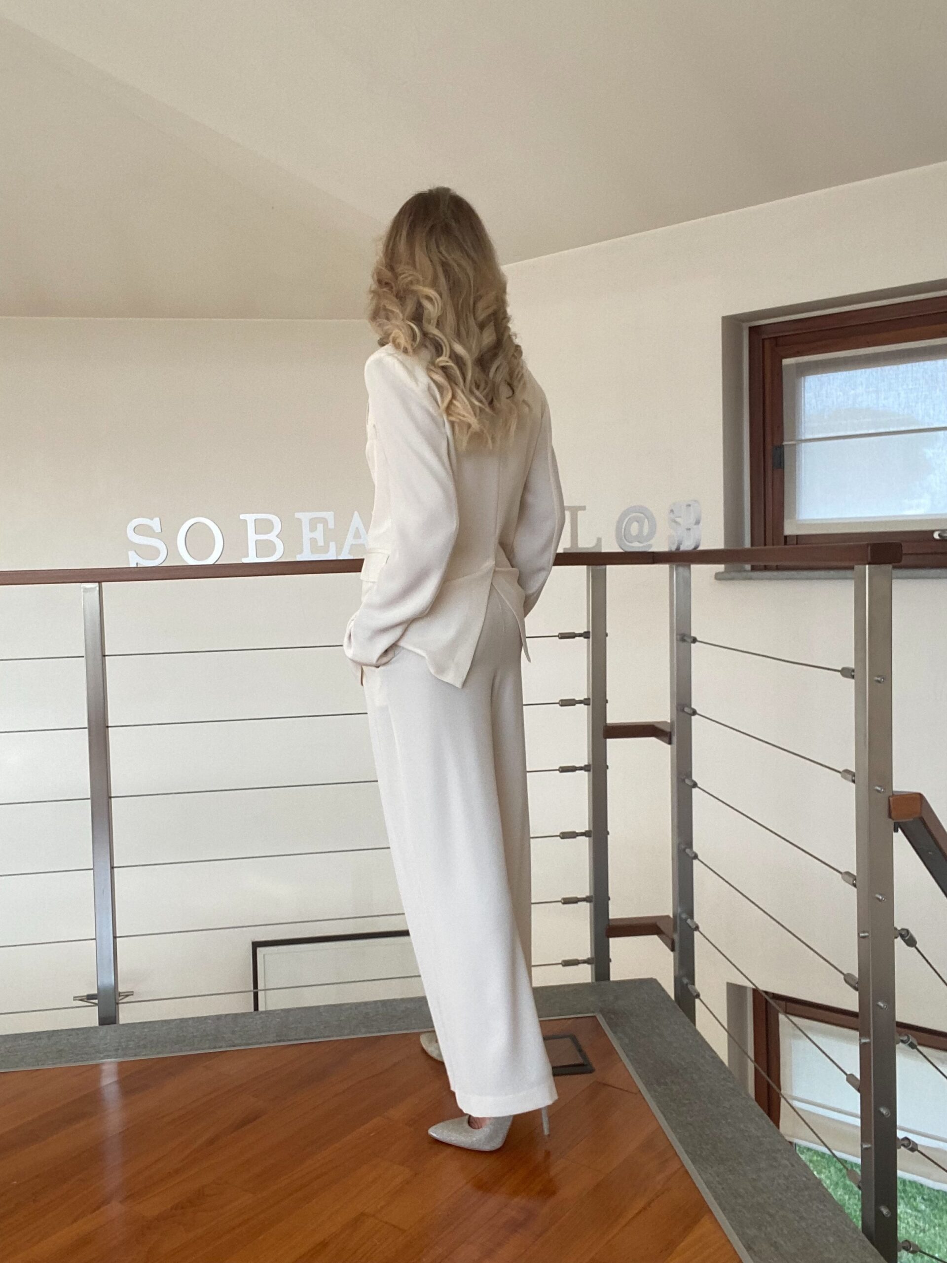 - Il blazer può essere abbinato con il pantalone ampio pinces