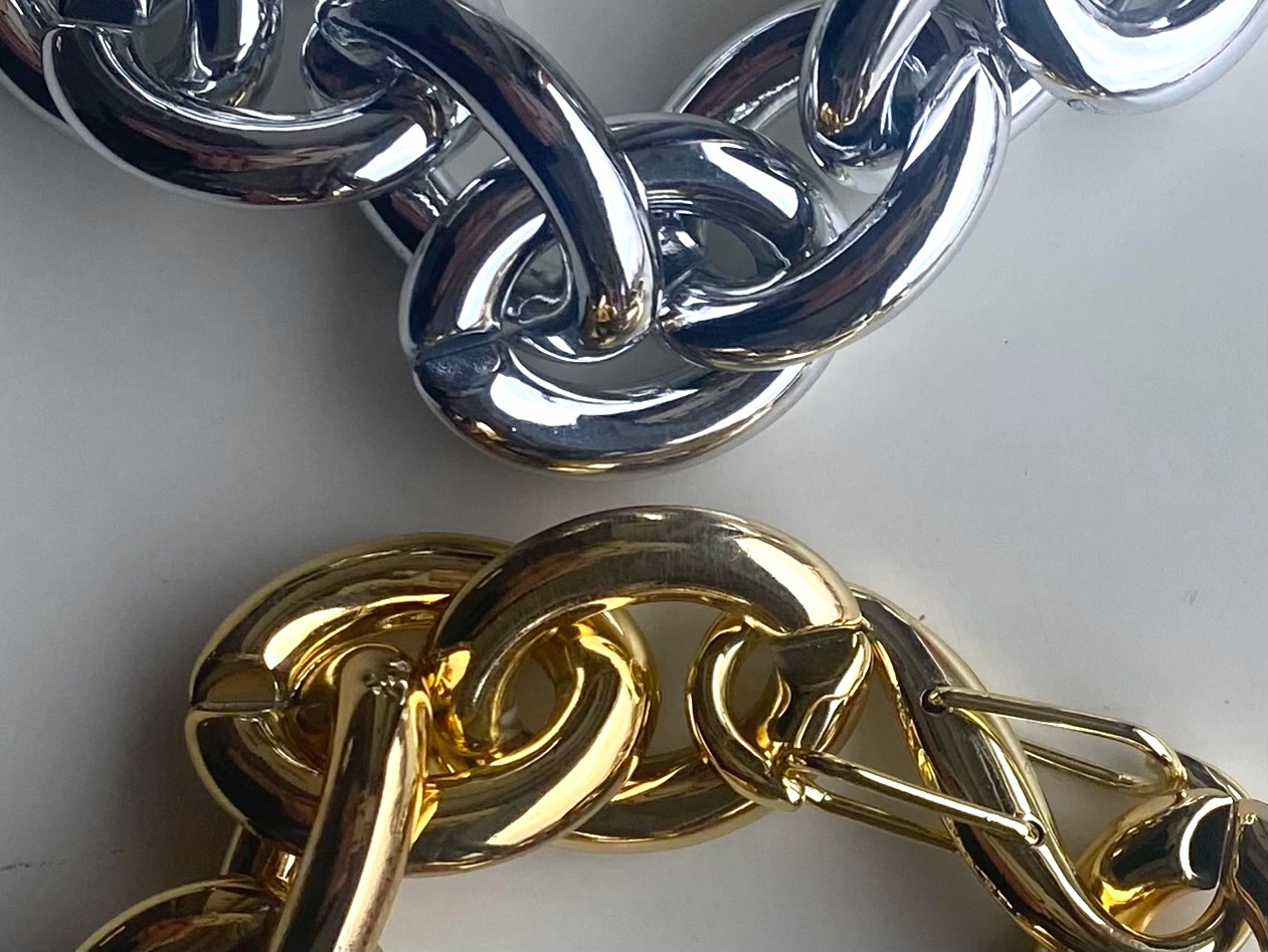 - Bracciale maglia forzatina in ABS dorato e argentato con chiusura a moschettone