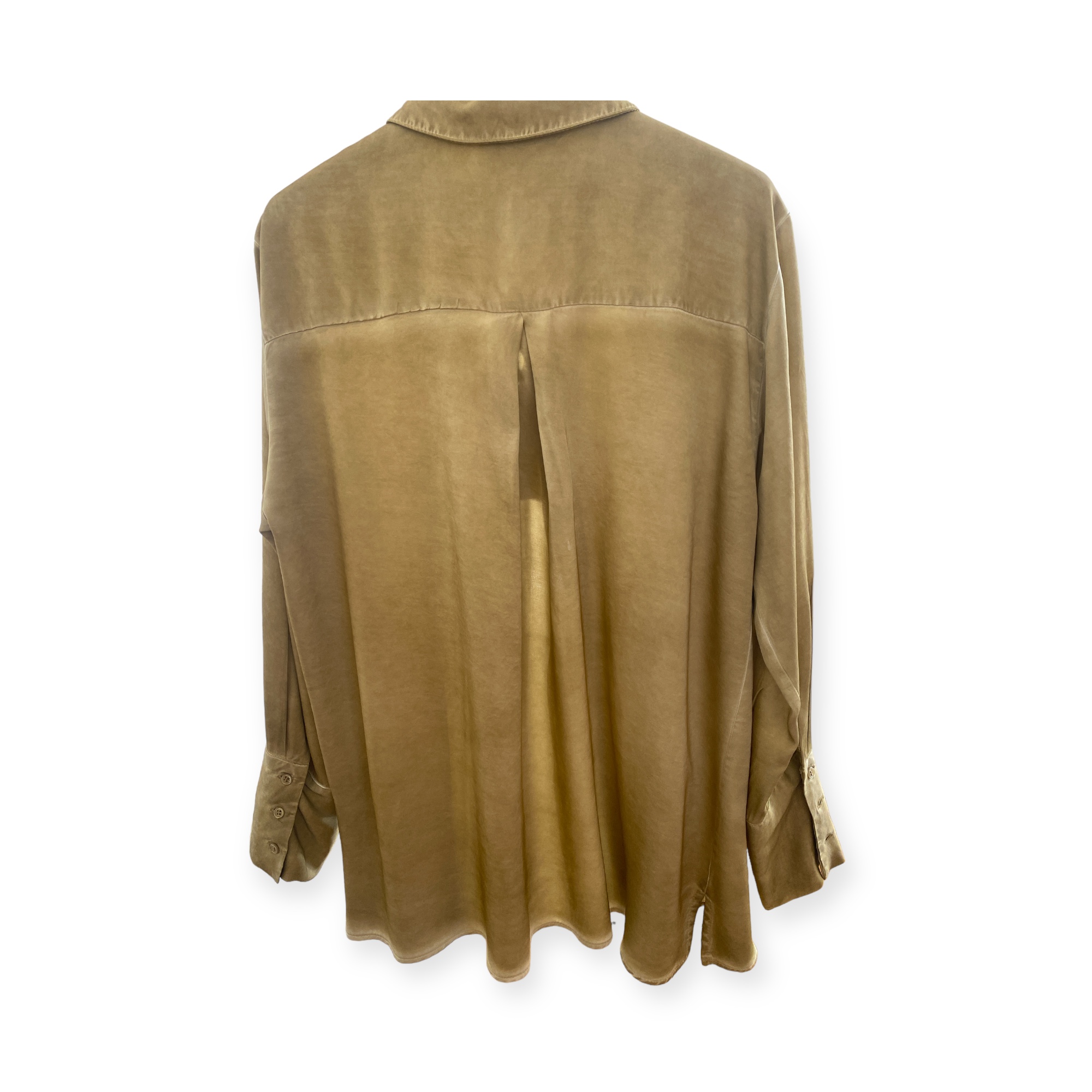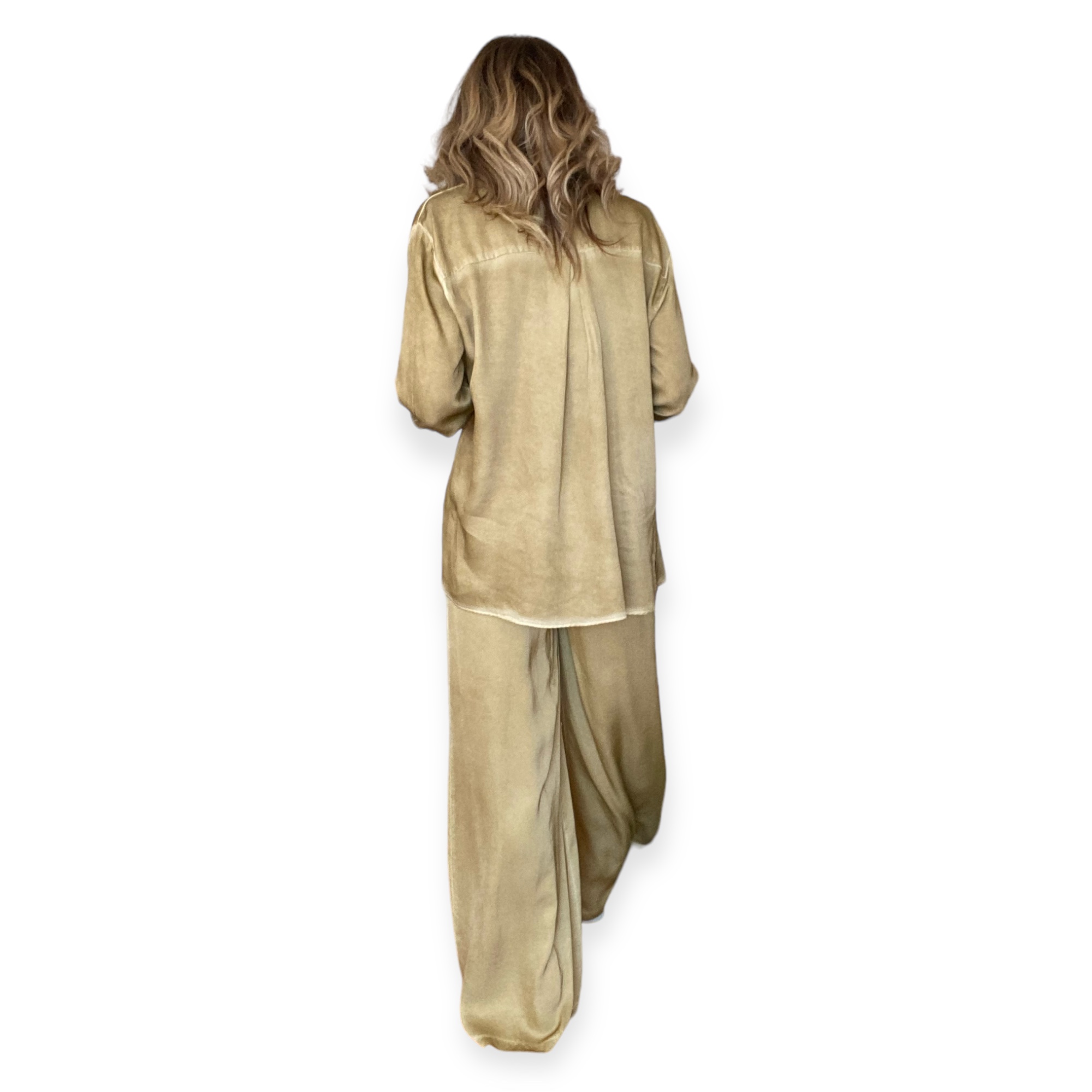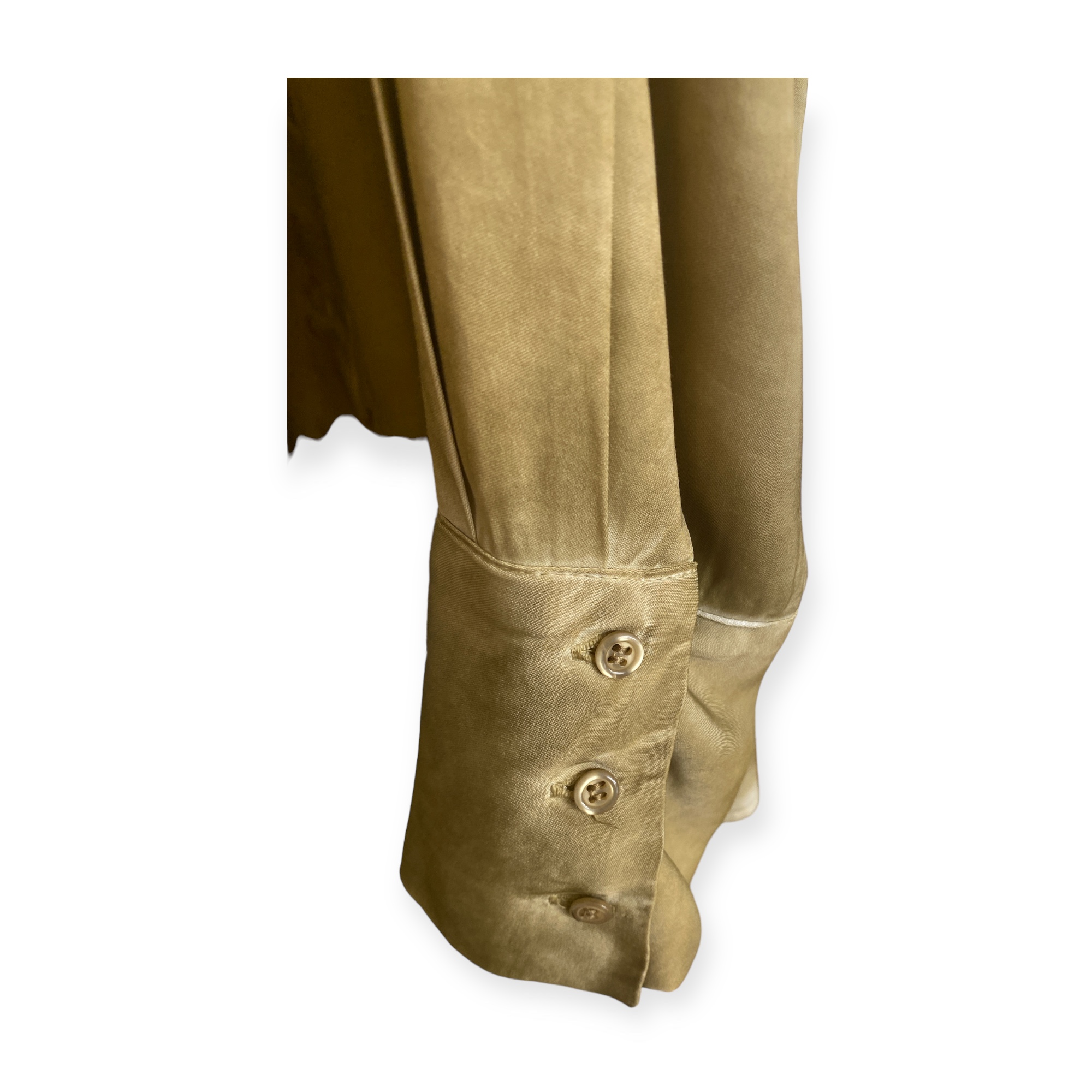 - Camicia raso tinto freddo, allacciatura frontale, polsino alto a 3 bottoni, fondopiega centrale