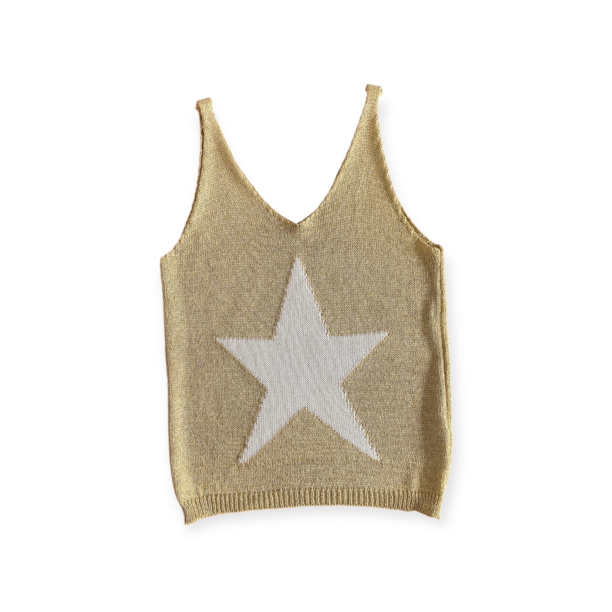 - Canotta in lurex con stella a contrasto sul davanti, scollatura a V davanti e dietro