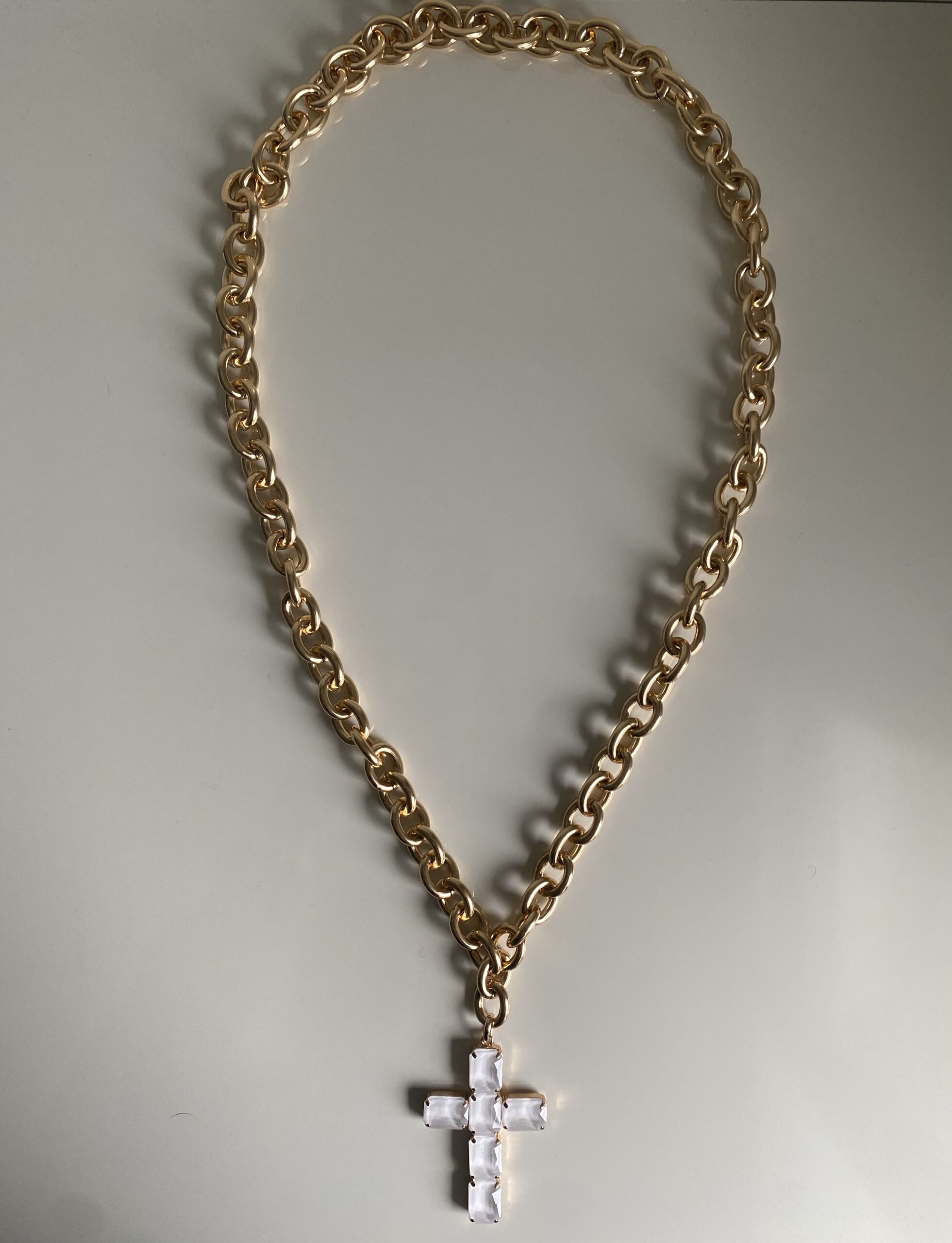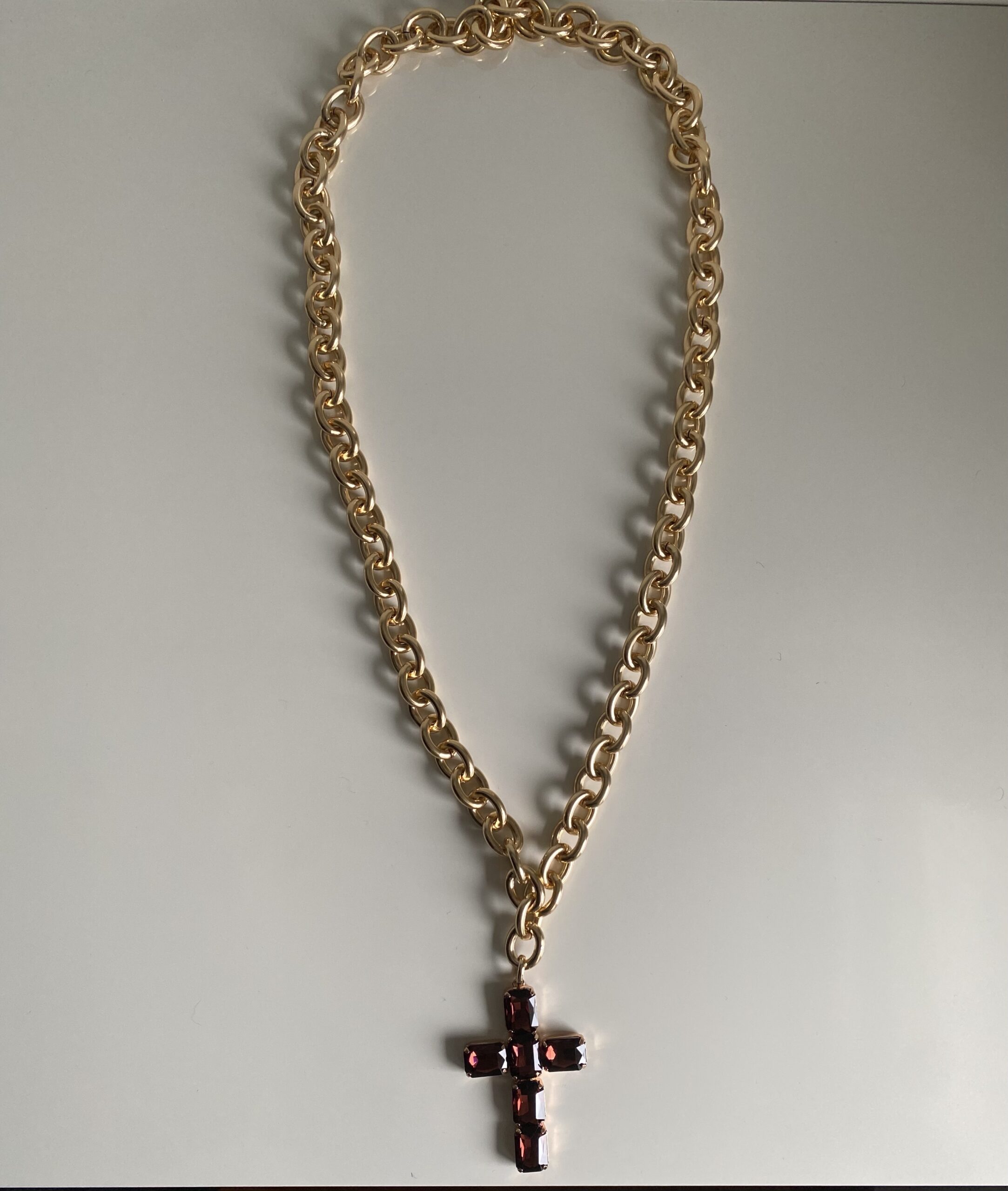 - Catena in maglia forzatina senza chiusura, con pendente a croce