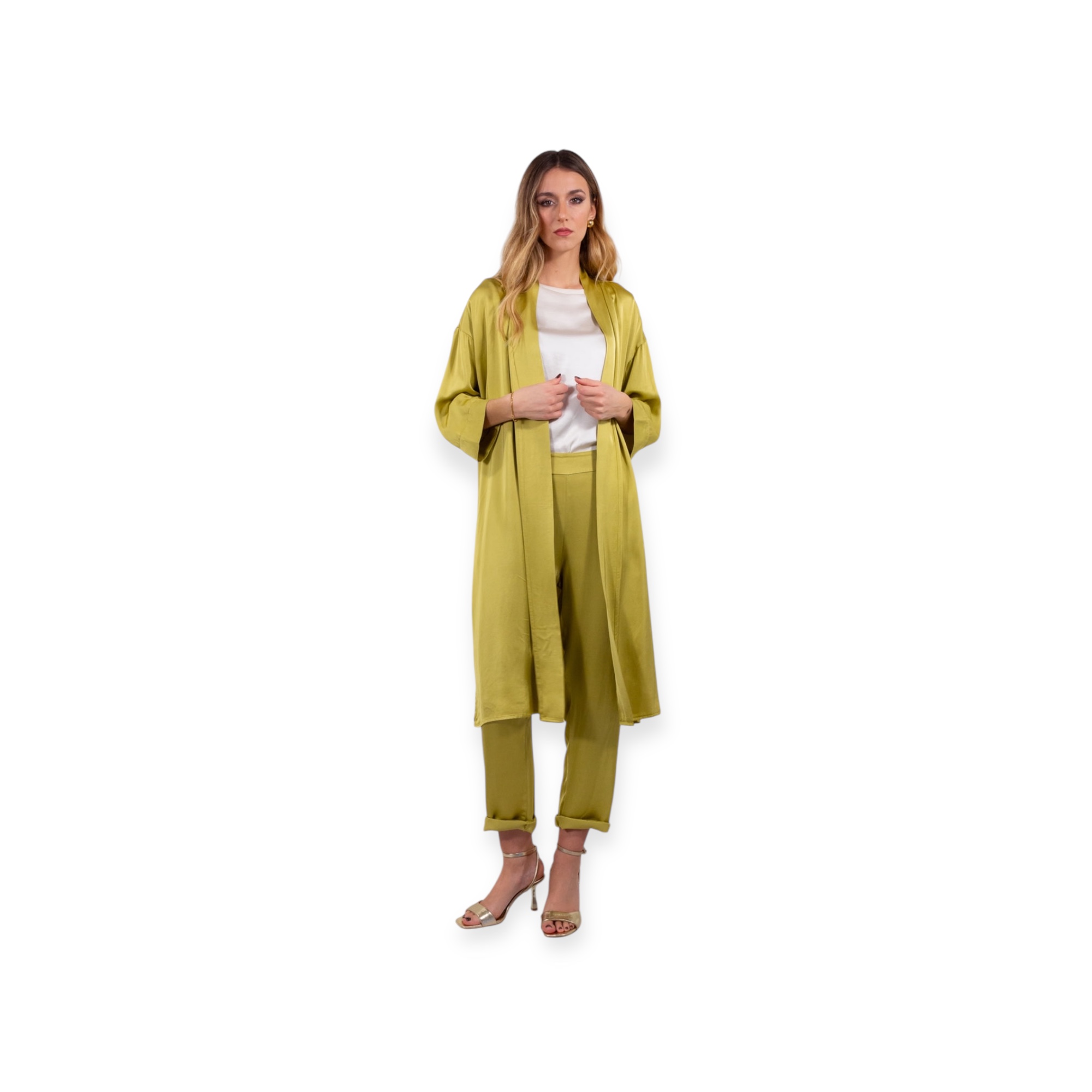 - Giacca lunga kimono satin, manica 3/4 senza allacciatura