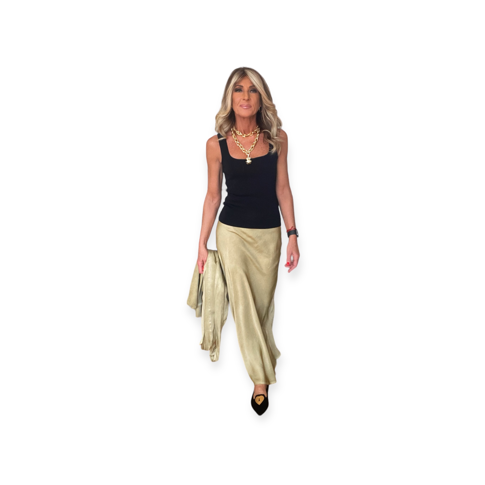 - Gonna lunga in raso tinto freddo con elastico in vita