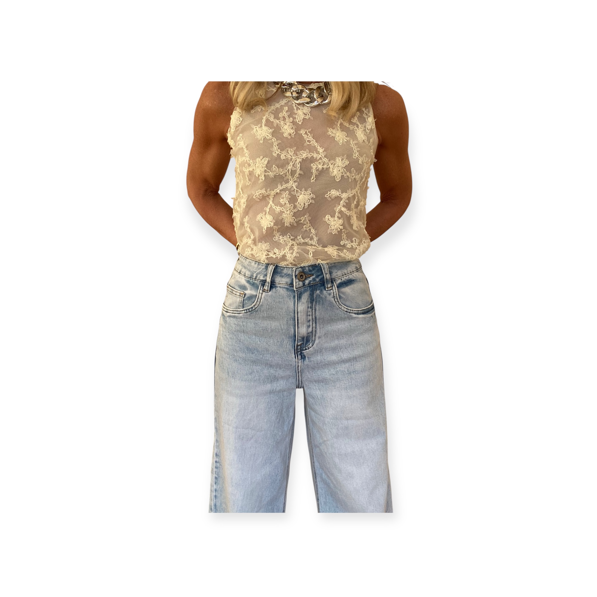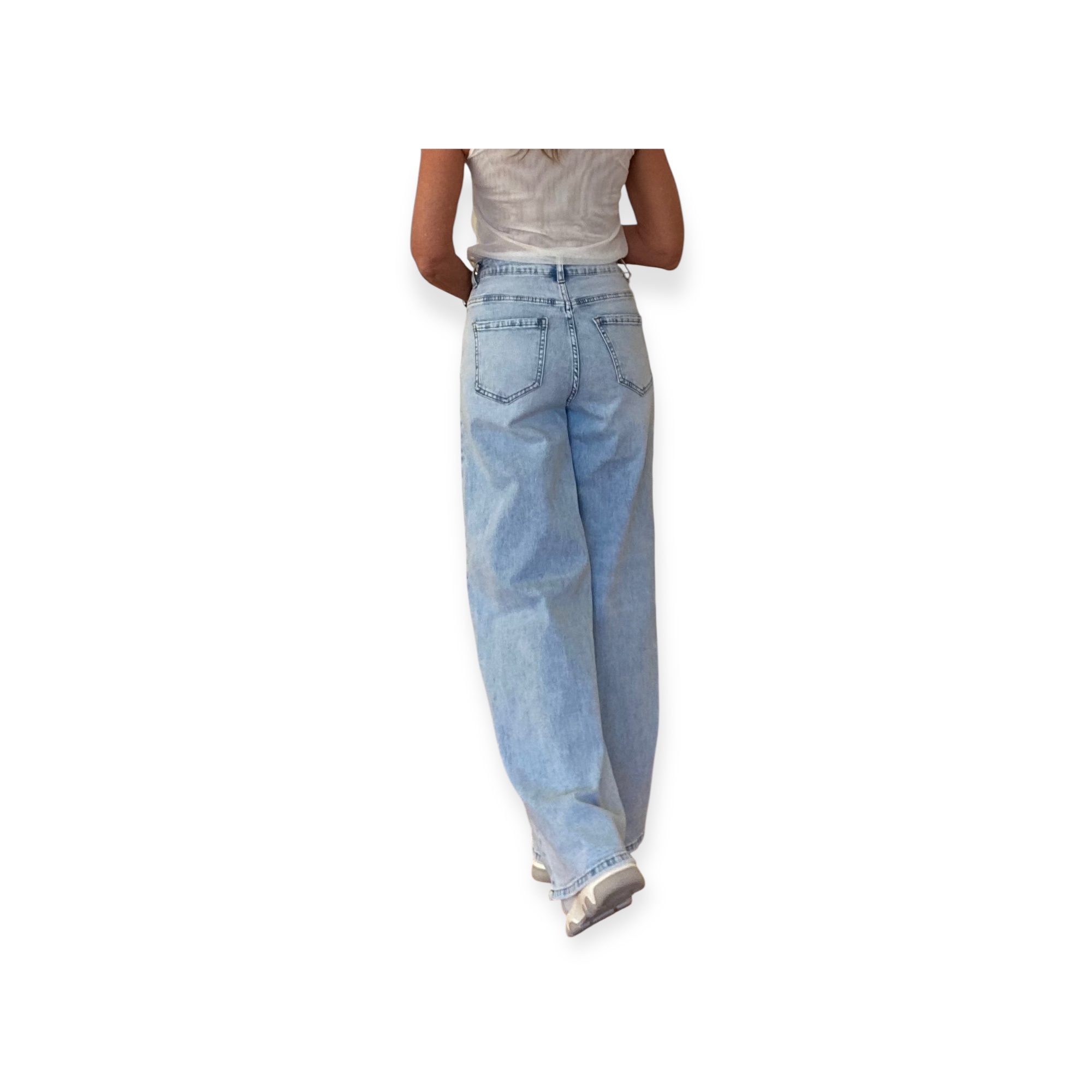 - Jeans in cotone wide leg con tasche, allacciatura a un bottone e zip, vita alta, gamba larga