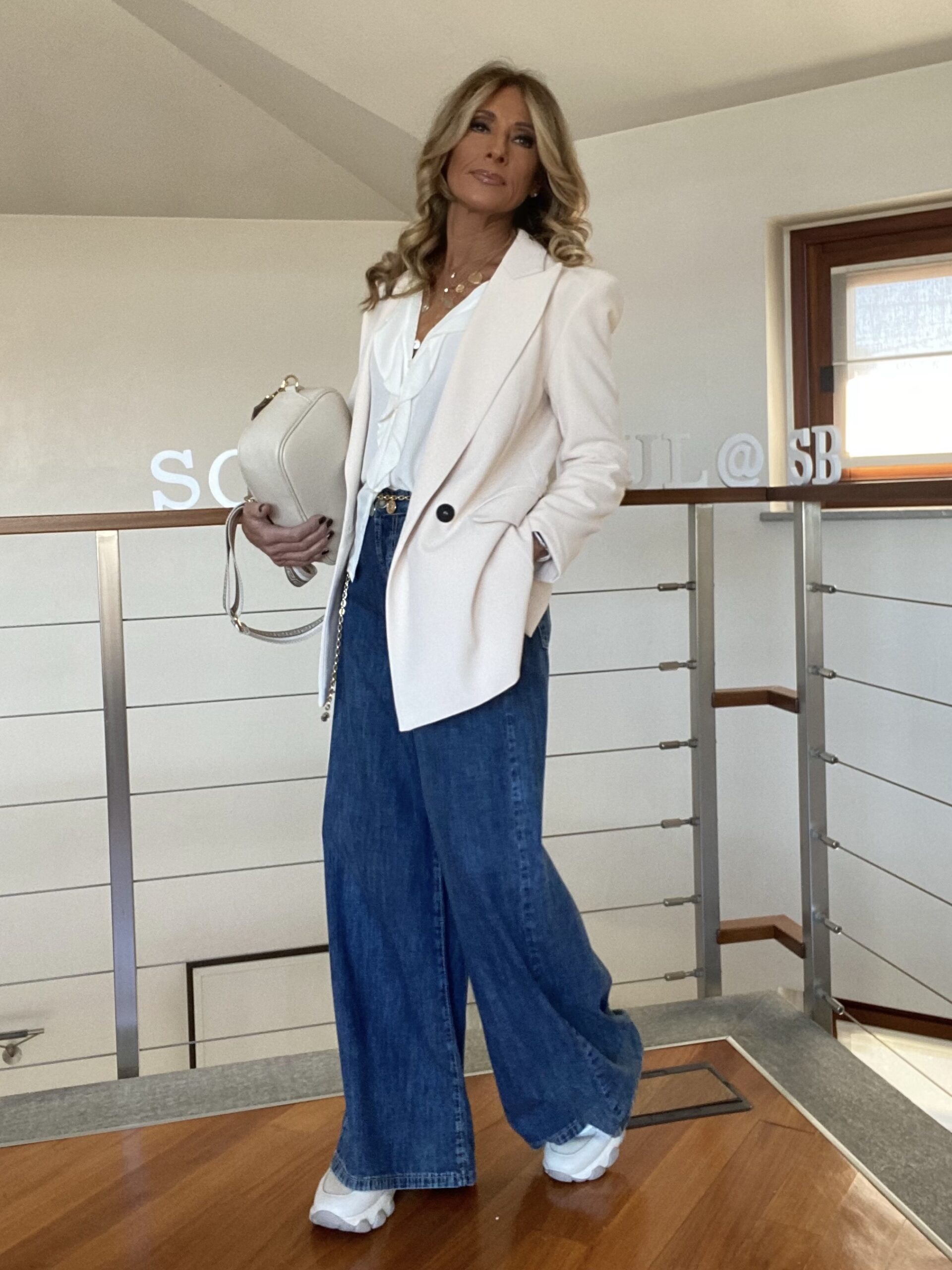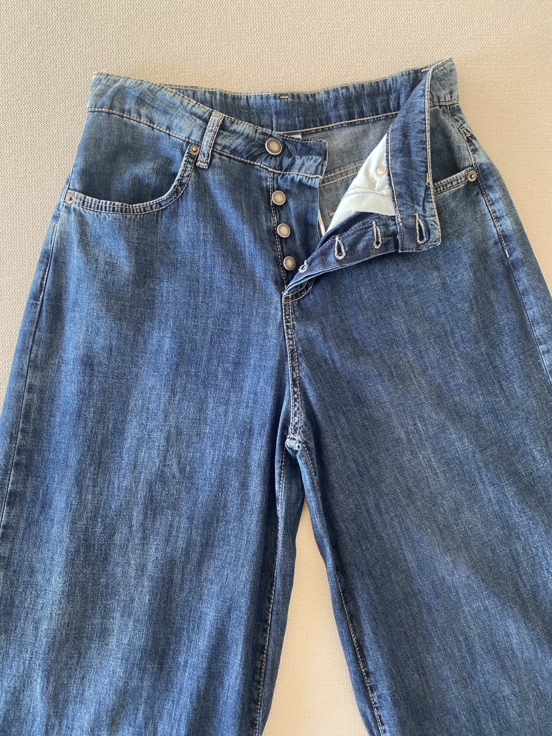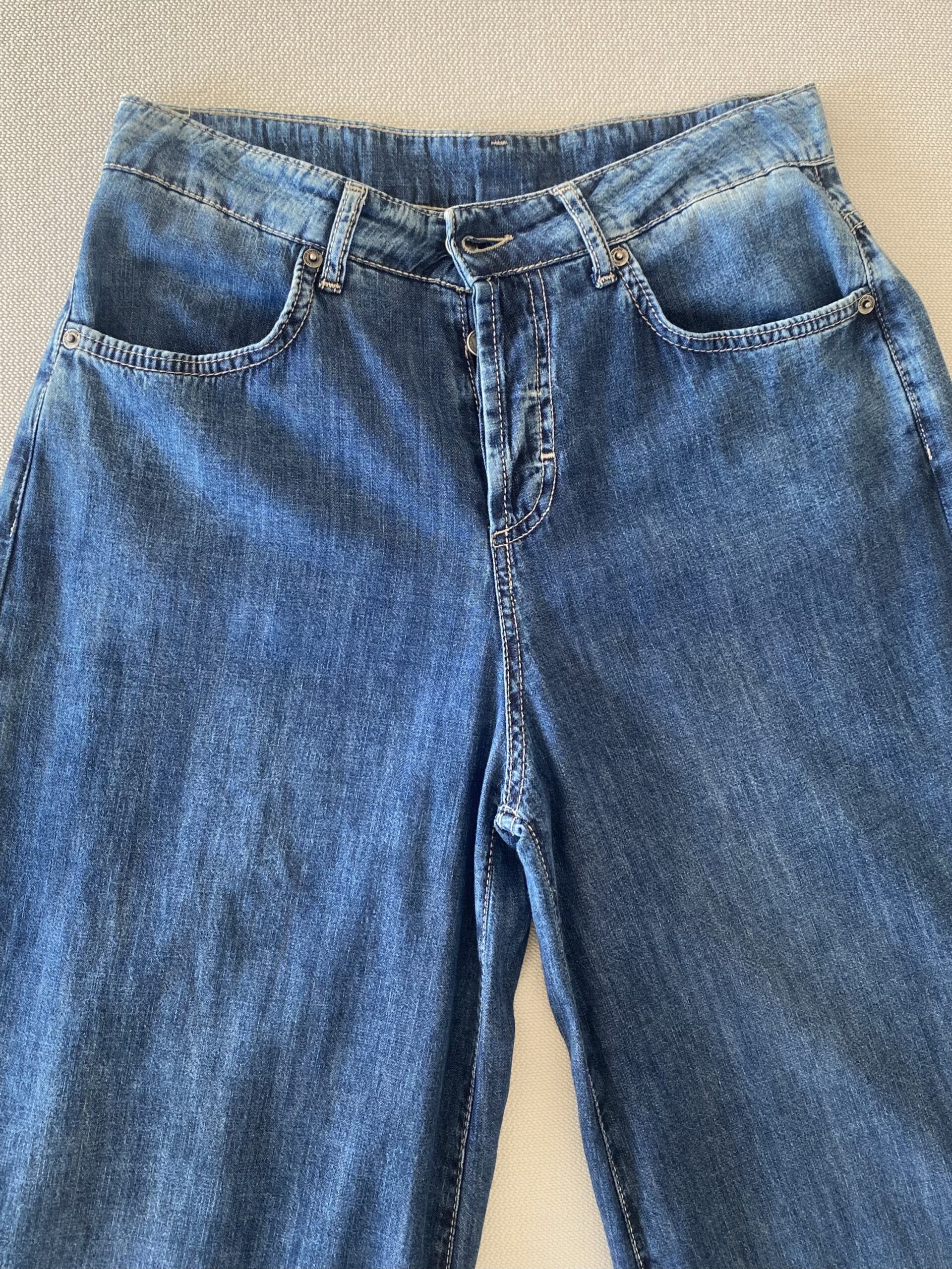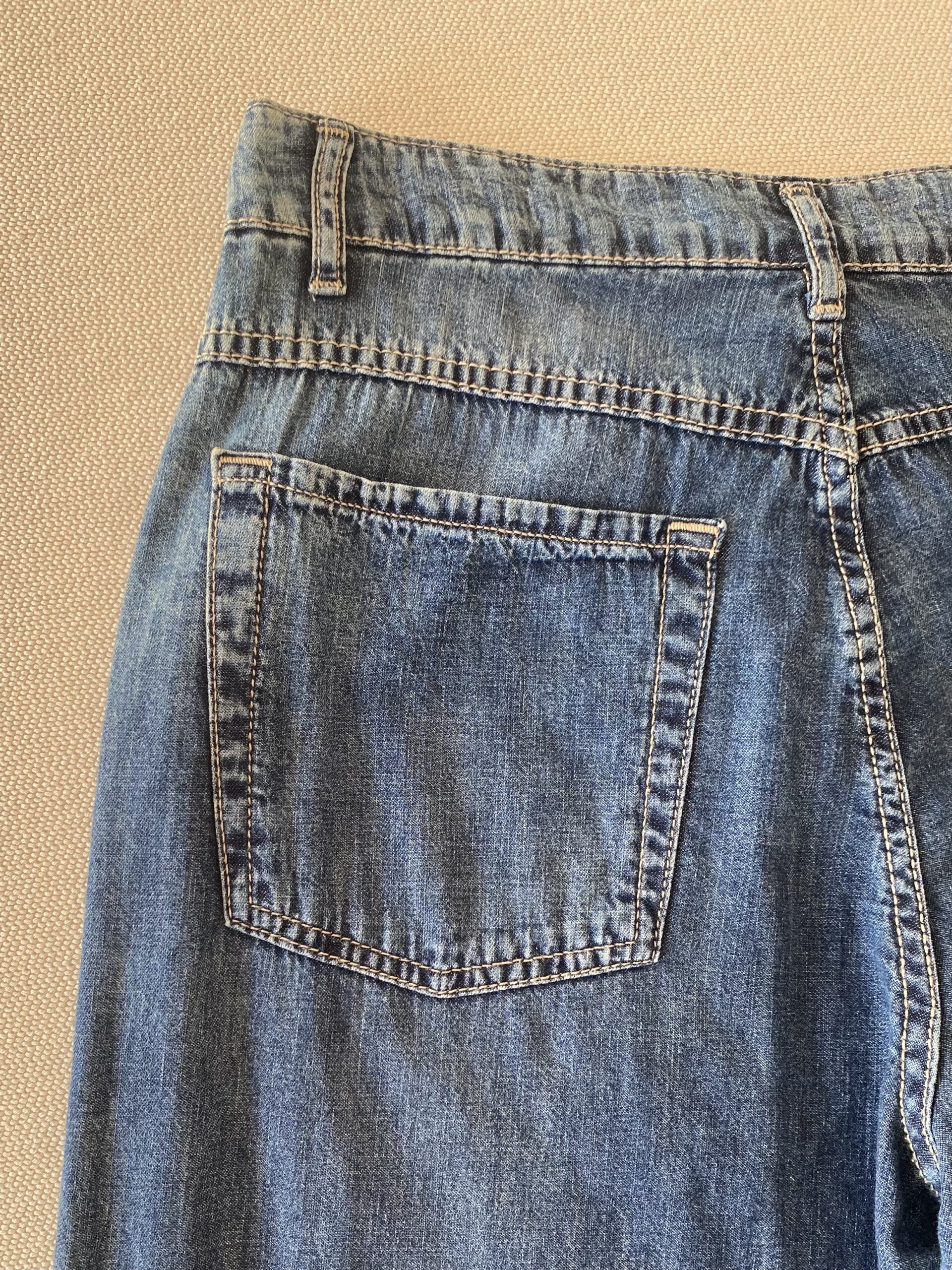- Jeans cinque tasche in denim leggero a vita alta, gamba larga