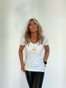 T shirt scollo V stampa effetto velluto